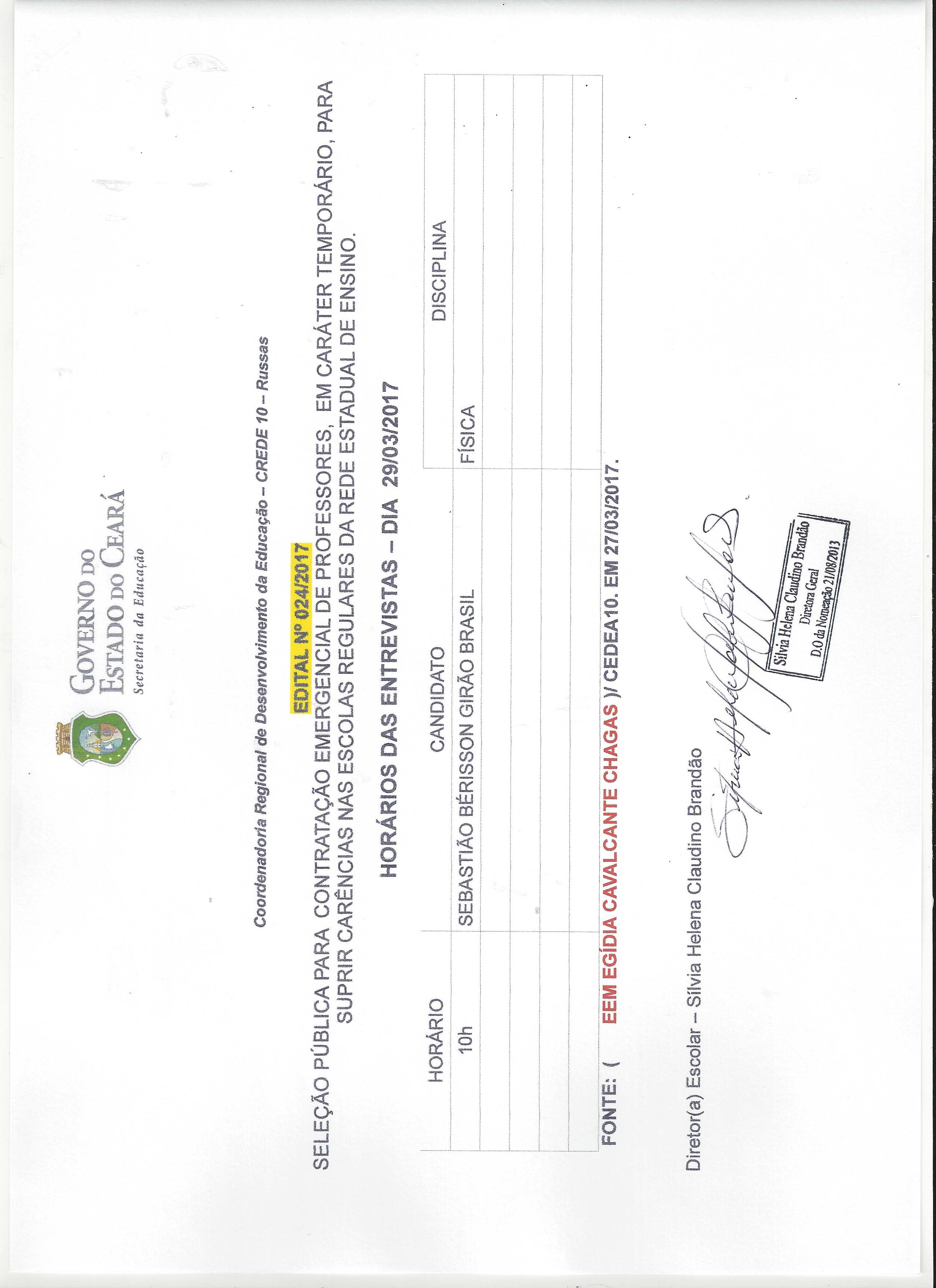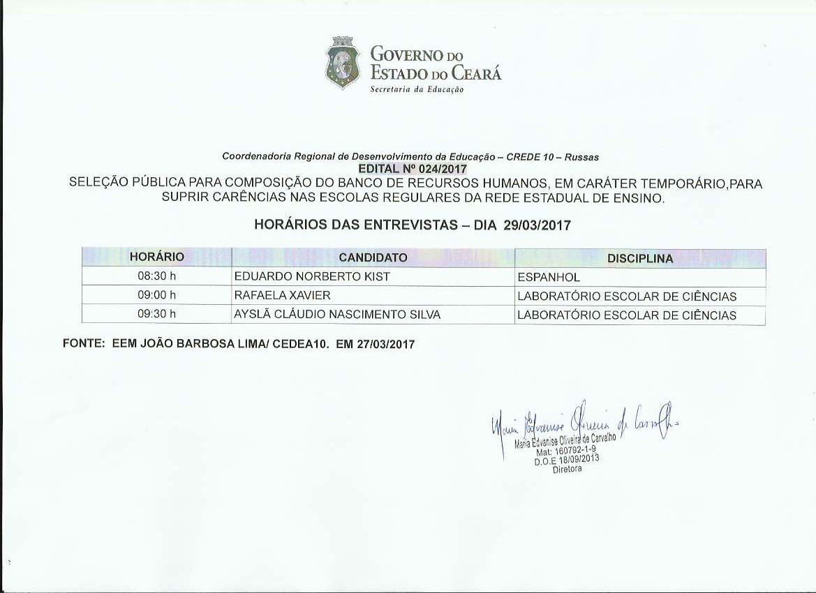 A Coordenadoria Regional de Desenvolvimento da Educação – CREDE 10 divulga as relações de inscrições deferidas eindeferidas referente ao edital 024/2017.