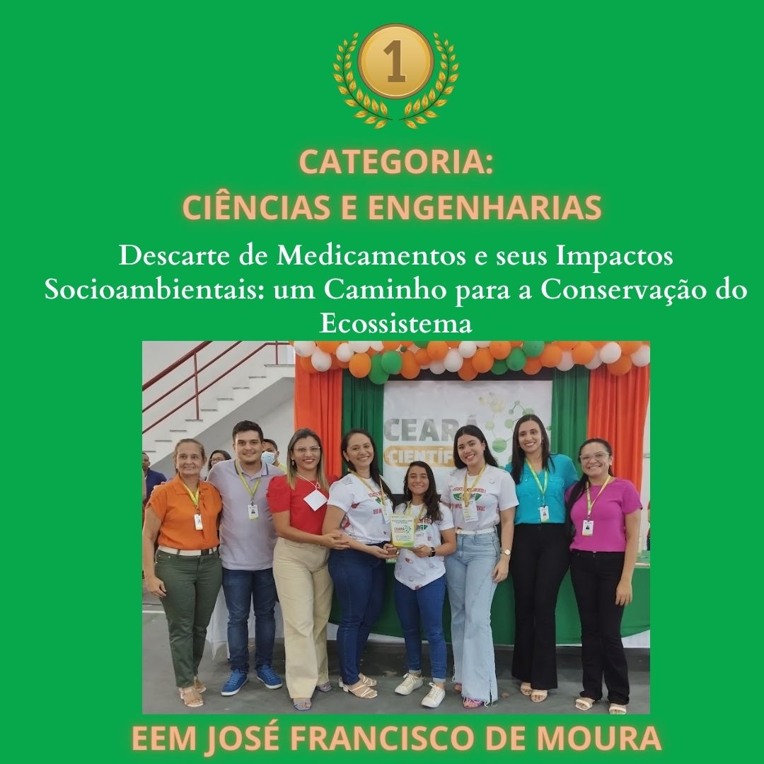 CLASSIFICAÇÃO – 1° – PROJETO – DESCARTE DE MEDICAMENTOS E SEUS IMPACTOS SOCIOAMBIENTAIS: UM CAMINHO PARA A CONSERVAÇÃO DO ECOSSISTEMA. – ESCOLA – EEM JOSÉ FRANCISCO DE MOURA