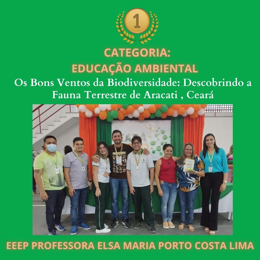 CLASSIFICAÇÃO – 1º – PROJETO – OS BONS VENTOS DA BIODIVERSIDADE: DESCOBRINDO A FAUNA TERRESTRE DE ARACATI, CEARÁ – ESCOLA – EEEP PROFESSORA ELSA MARIA PORTO COSTA LIMA
