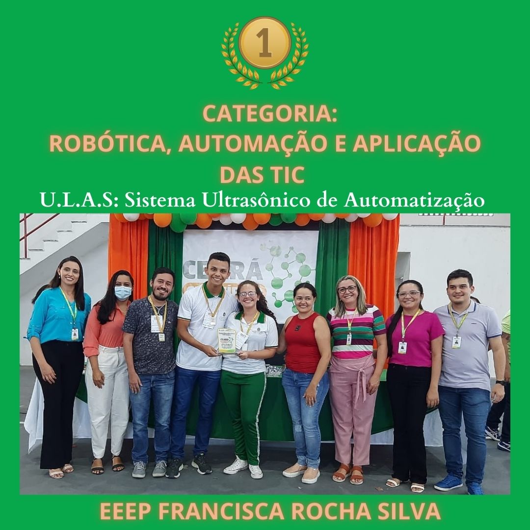 CLASSIFICAÇÃO – 1º – PROJETO – U.L.A.S: SISTEMA ULTRASSÔNICO DE AUTOMATIZAÇÃO -ESCOLA – EEEP FRANCISCA ROCHA SILVA