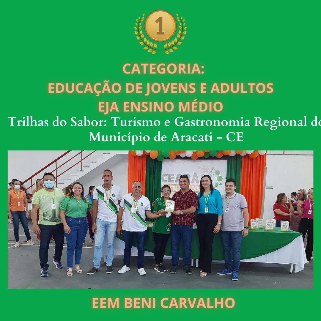 CLASSIFICAÇÃO – 1° – PROJETO – TRILHAS DO SABOR: TURISMO E GASTRONOMIA REGIONAL DO MUNICÍPIO DE ARACATI-CEARÁ ESCOLA – EEM BENI CARVALHO