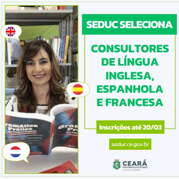 Secretaria da Educação (Seduc) divulga chamada pública para a Formação de Banco de Professores para atuarem como consultores de Língua Inglesa, Língua Espanhola e Língua Francesa. 🇬🇧🇺🇸🇪🇸🇫🇷