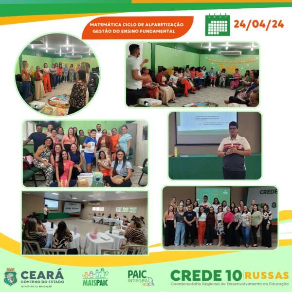 A Crede 10, através da Célula Cooperação com os Municípios – Cecom, realizou no período de 16 a 25 de abril de 2024 as formações regionais Mais Paic/ Paic Integral do Módulo II. Os encontros formativos aconteceram na sede da regional e/ou Campus da Universidade Federal do Ceará em Russas, de 8h às 17h, de acordo com as especificações abaixo: