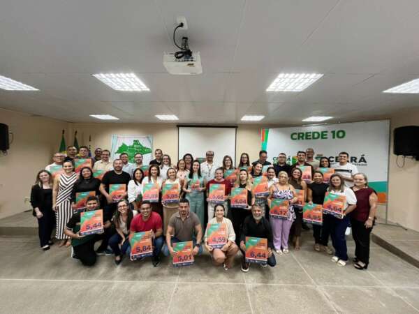 Na ocasião, também foi realizada a homenagem aos destaques em resultados regionais e estaduais de 2025, com a entrega de troféus em reconhecimento ao desempenho das escolas. Dando continuidade, o momento “Percurso 2026: do que dispomos na caminhada 2026” promoveu a reflexão sobre estratégias, recursos e desafios para o ano letivo, seguido pelo painel “Compartilhando trajetória das boas práticas para aprendizagem com equidade”, que oportunizou a socialização de experiências exitosas entre as unidades escolares, com a participação das escolas EEMTI José Francisco de Moura, EEEP Lúcia Baltazar Costa e EEMTI Antônio Vidal Malveira.