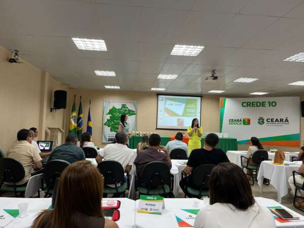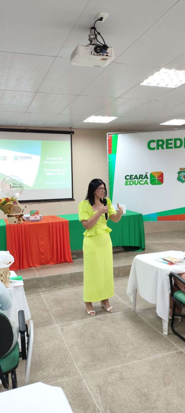 Na programação, foi realizada a palestra “Justiça Curricular: conceitos e práticas para a garantia das aprendizagens com equidade”, ministrada pela Secretária da Educação do Estado do Ceará, Jucineide Fernandes, abordando princípios e diretrizes voltados à promoção da equidade no processo de ensino e aprendizagem. Em seguida, a Coordenadora Regional, Emília Gomes Celedônio, conduziu a apresentação do cenário dos resultados no Ensino Médio 2025, com análise dos indicadores das escolas sob a a abrangência da Crede10.